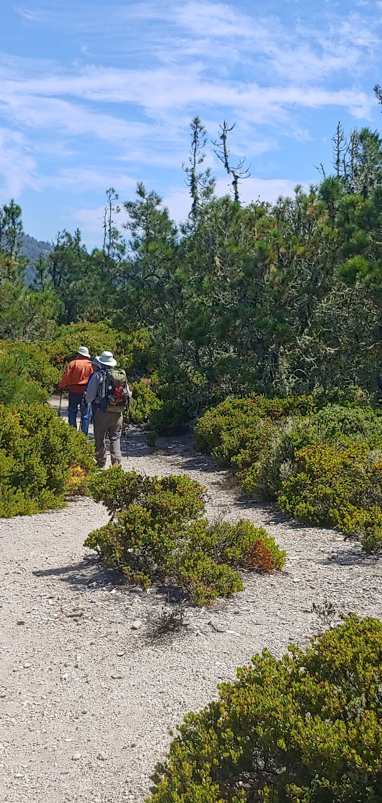 Although the high point was only 1,609′ and the hike an out-and-back totaling only about 5 miles, I’d say, as Ralph claimed, that this was “a real butt-kicker.” However, his comment doesn’t include the fact that he was carrying a 20-25 lb. backpack as part of his continual trail-ready conditioning plan. Various reports rate the hike as difficult, others as moderate — subjective of course!